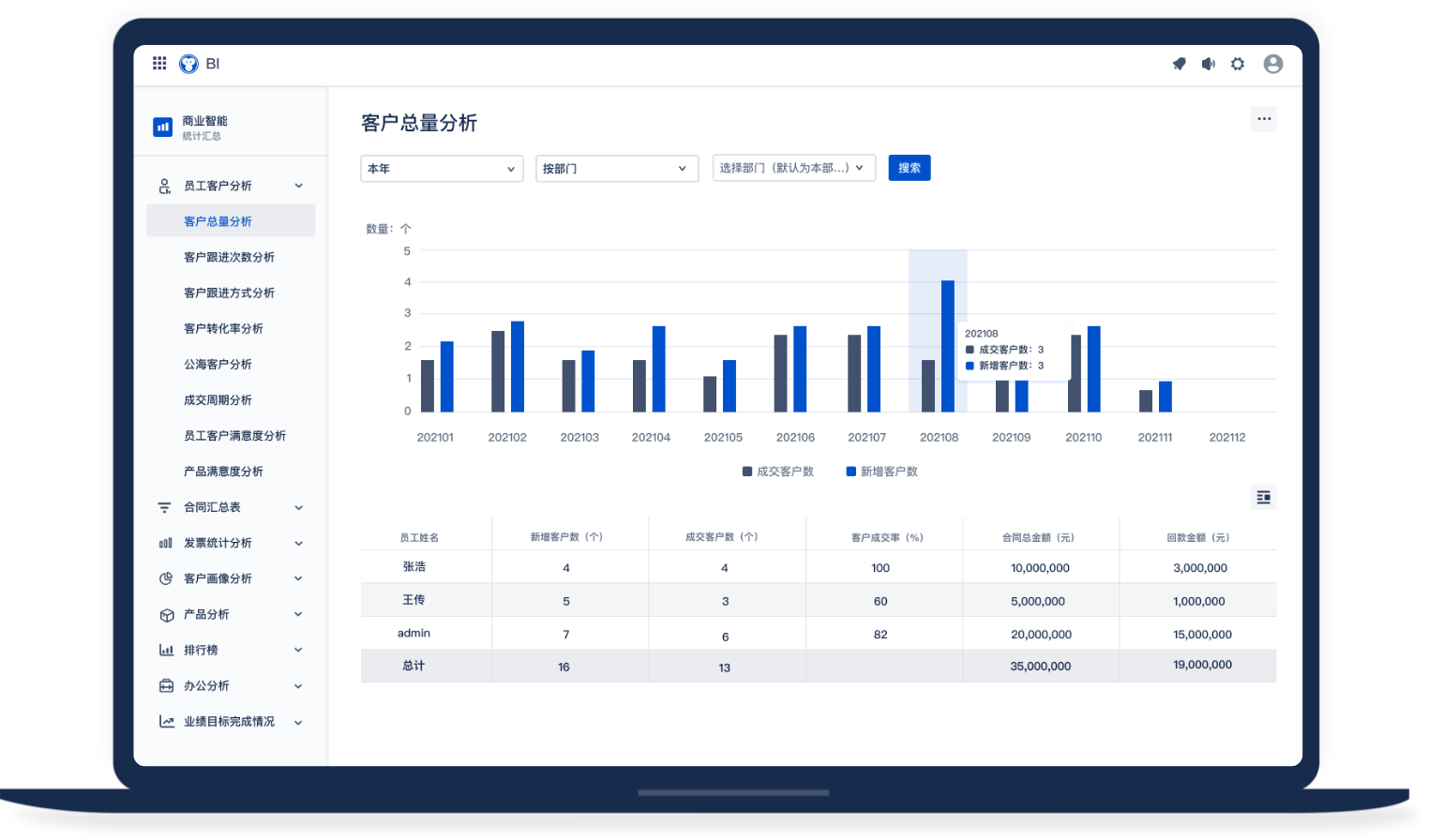 豐富的報表類型關聯(lián)了多樣的數(shù)據主體:客戶、線索、商機、合同、地域分布、跟進次數(shù)等等可實時查看,全面把握客戶動態(tài),激發(fā)員工能動性。